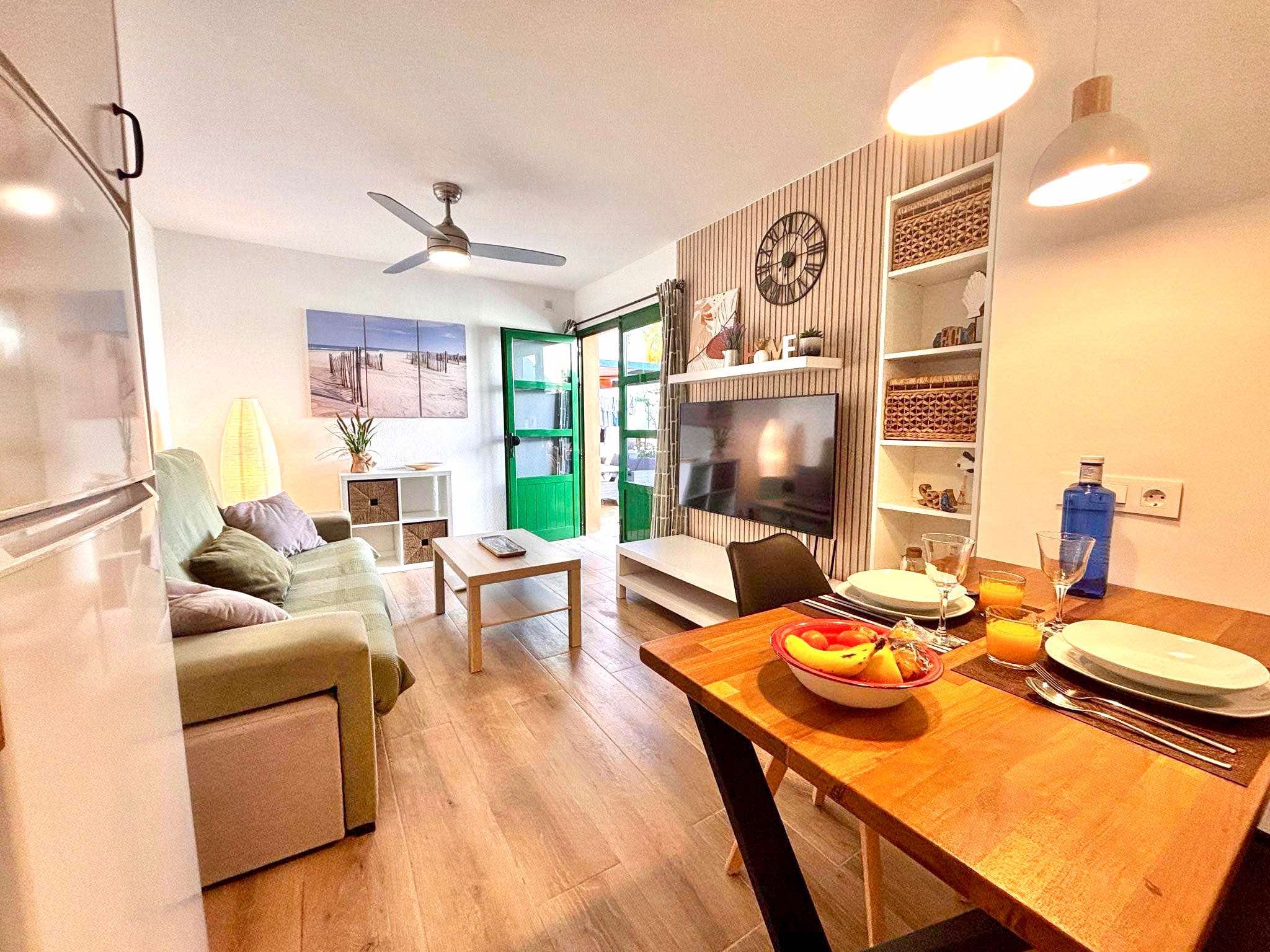 El complejo cuenta con amplias zonas ajardinadas, una gran piscina comunitaria y un ambiente relajado, todo ello a pocos pasos de restaurantes, tiendas, el centro comercial Atlántico y las playas de arena dorada de Caleta de Fuste.