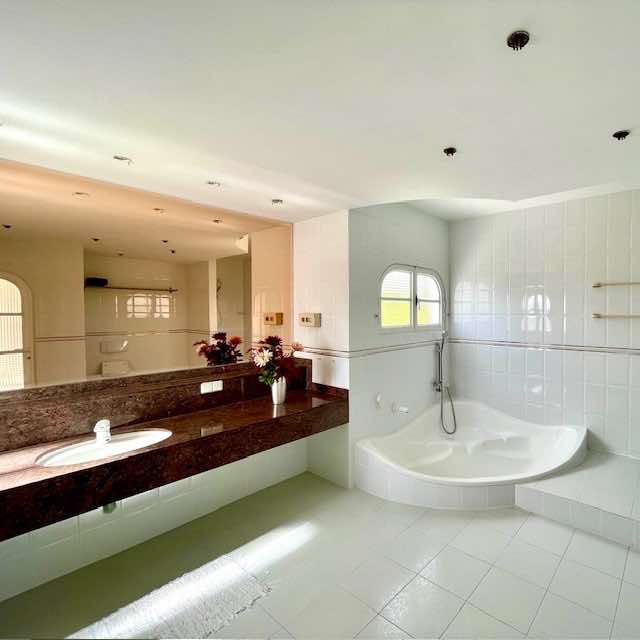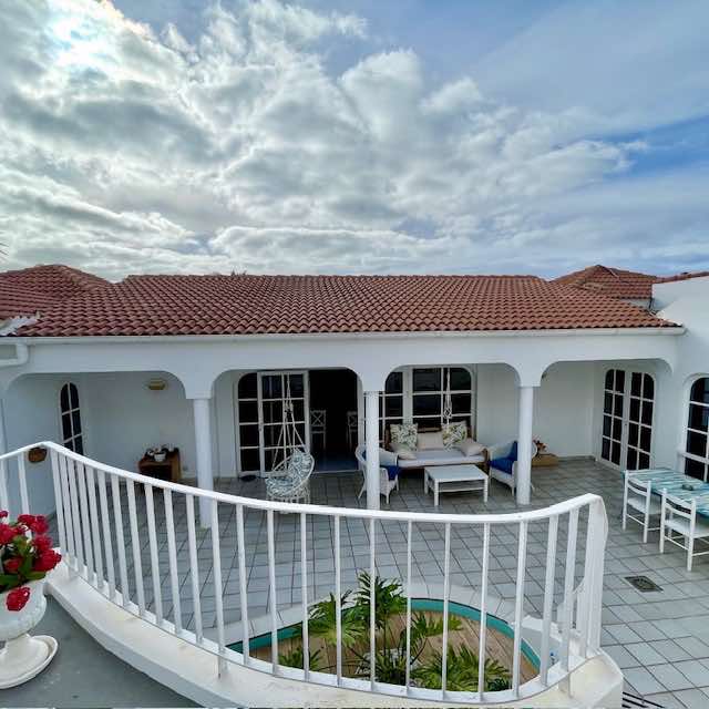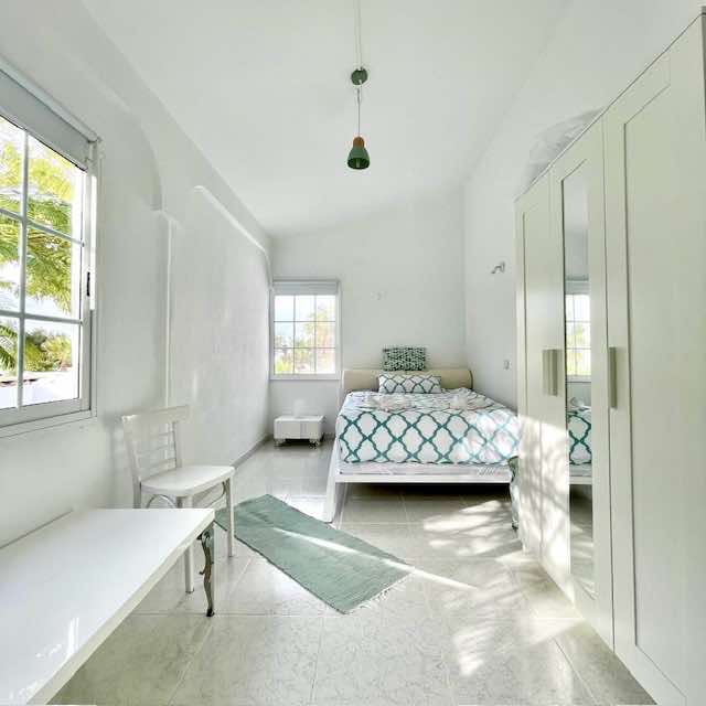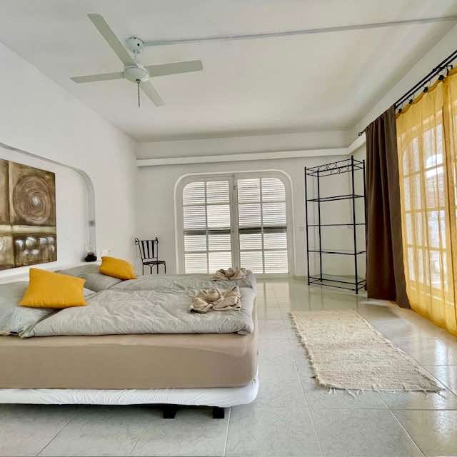 Al ingresar a la propiedad, encontramos un recibidor que da acceso directo al gran patio desde donde se distribuye el condominio en diferentes secciones; Un dormitorio principal con vestidor y baño privado en suite con jacuzzi a un lado, en el lado opuesto encontramos otro dormitorio con baño y despacho. En el patio central, una parte está cubierta con puertas corredizas de vidrio y se utiliza como comedor al aire libre. Dispone de un amplio salón con vistas al amplio patio que se utiliza como zona chill out.