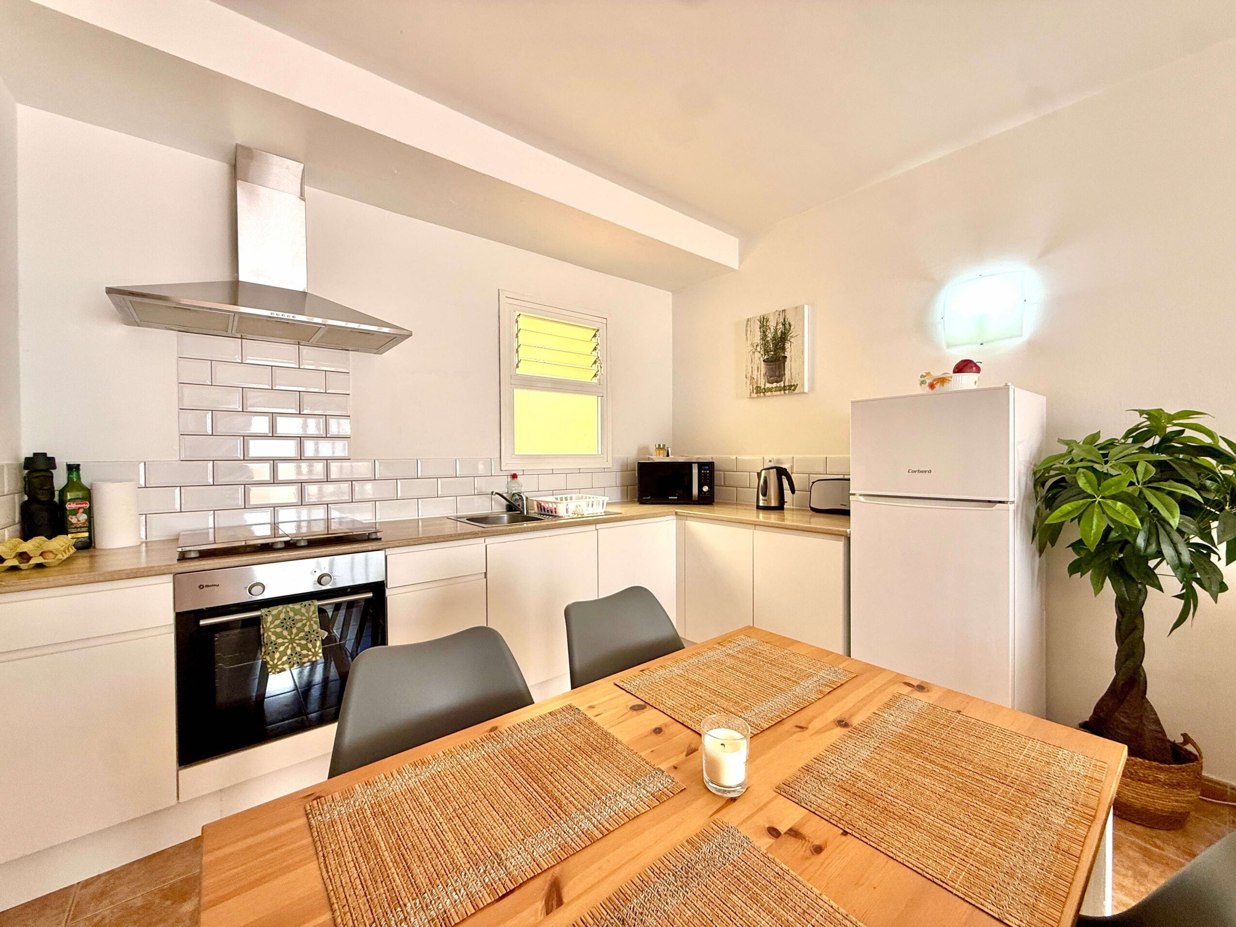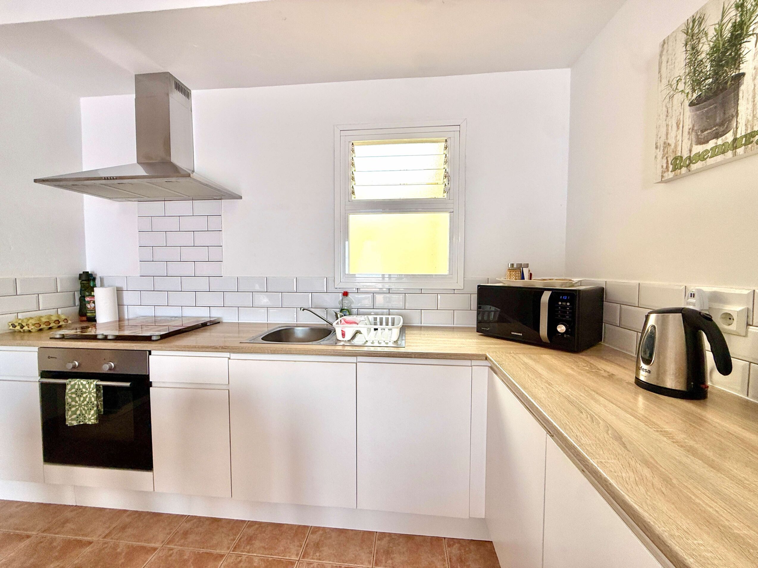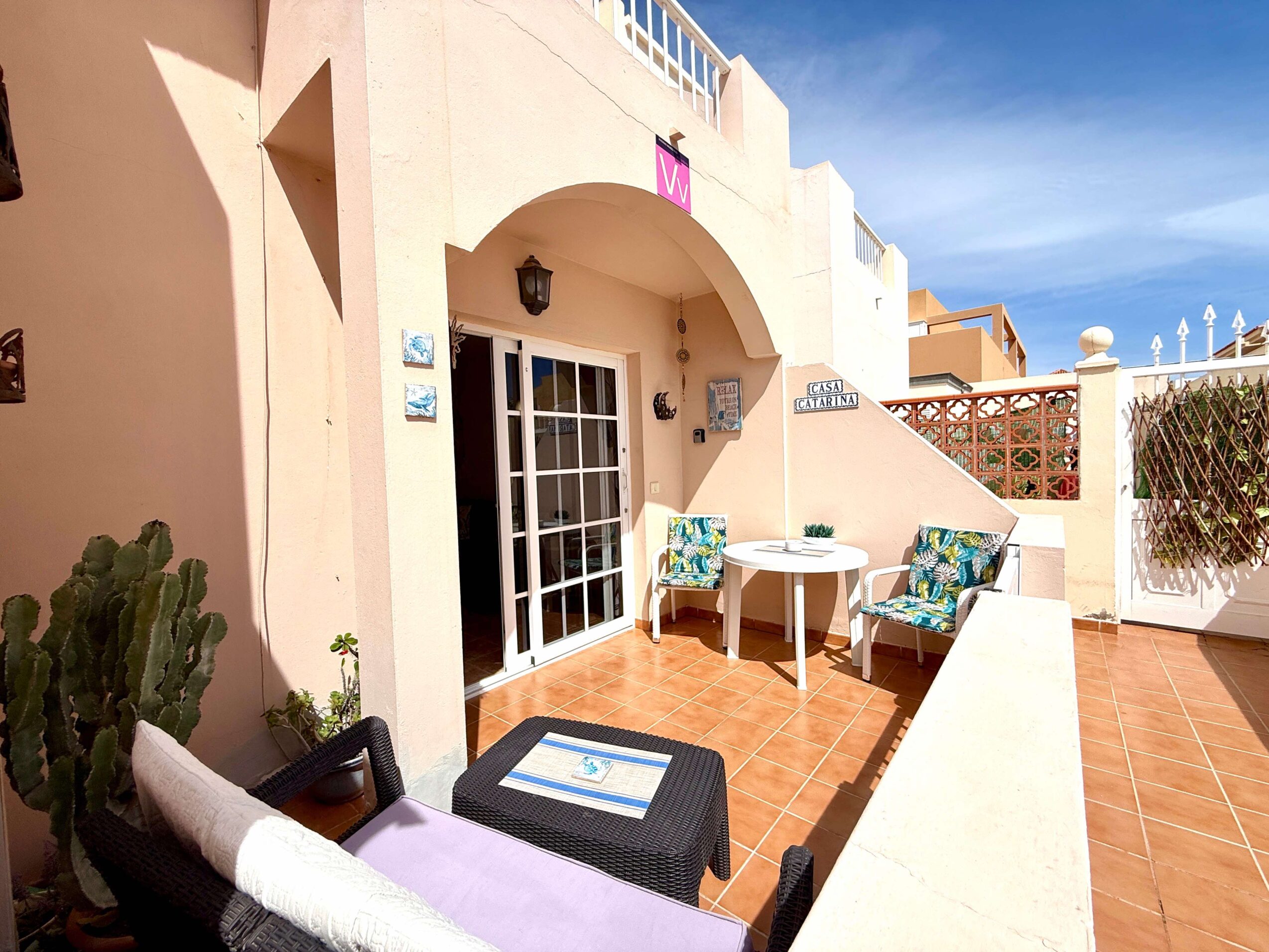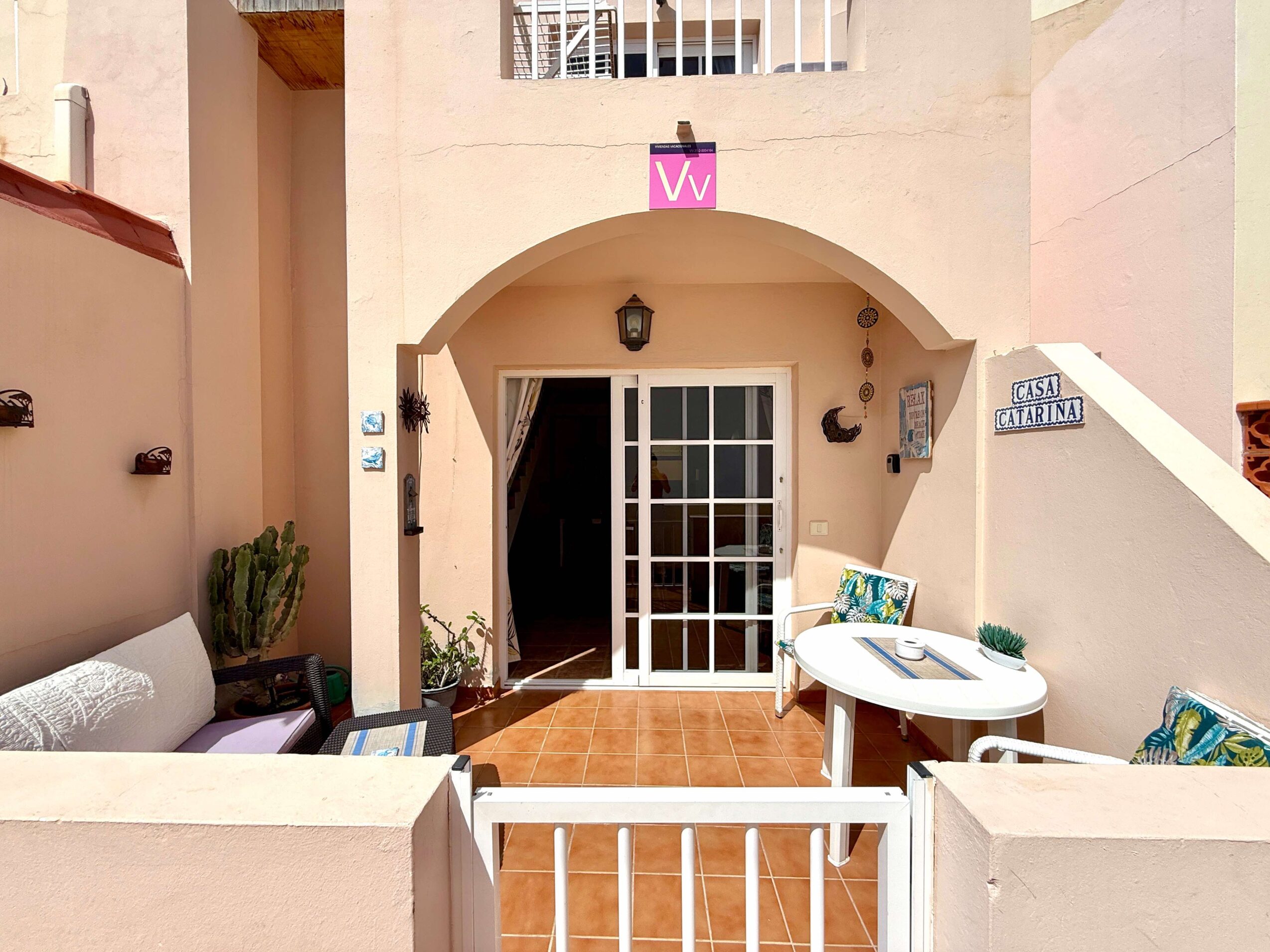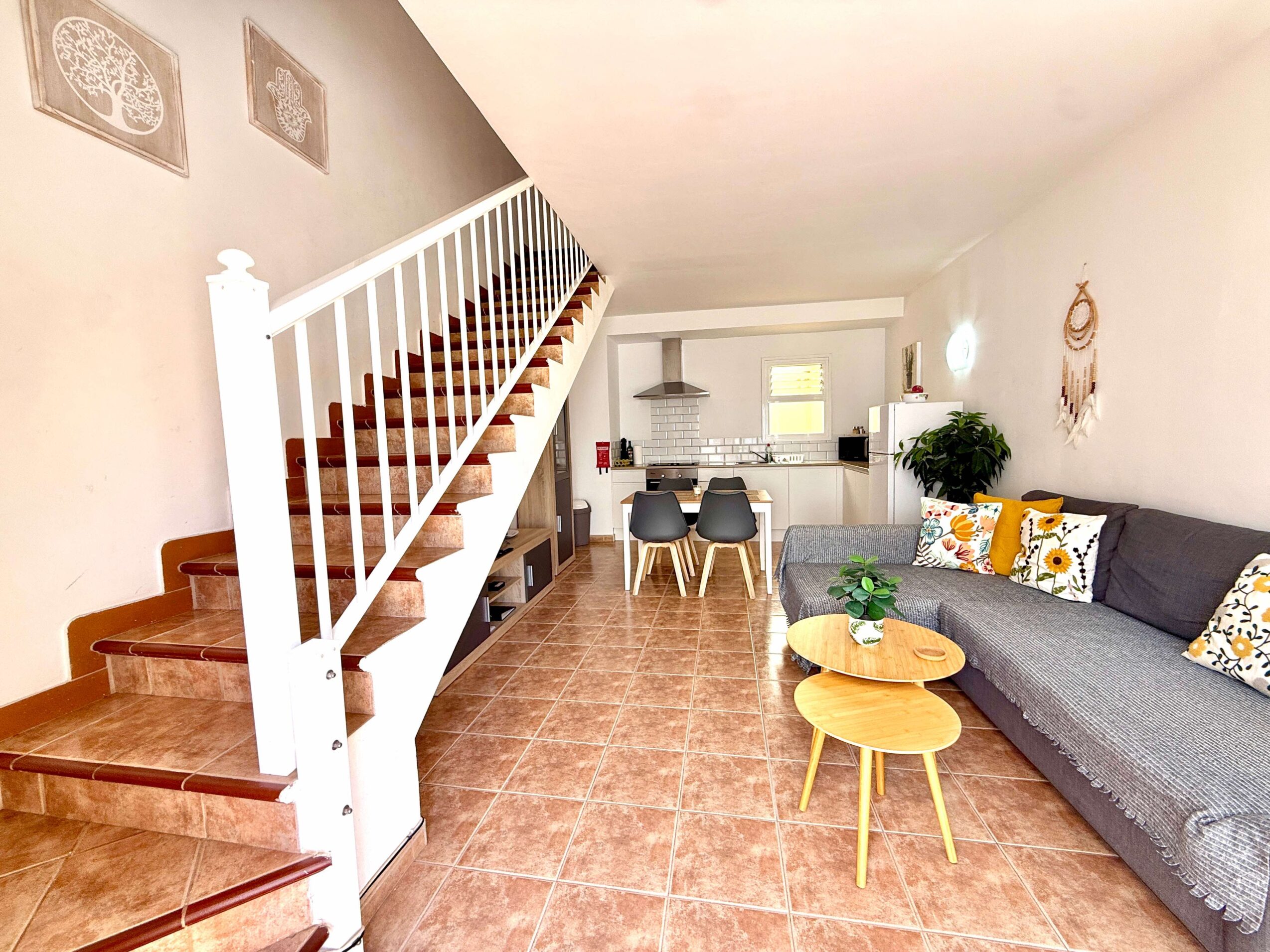 La vivienda nos recibe con un acogedor patio en la entrada, ideal para disfrutar del clima privilegiado de la isla durante todo el año. En la planta baja encontramos un luminoso salón-comedor, perfectamente integrado, junto a una cocina funcional que aprovecha al máximo el espacio.