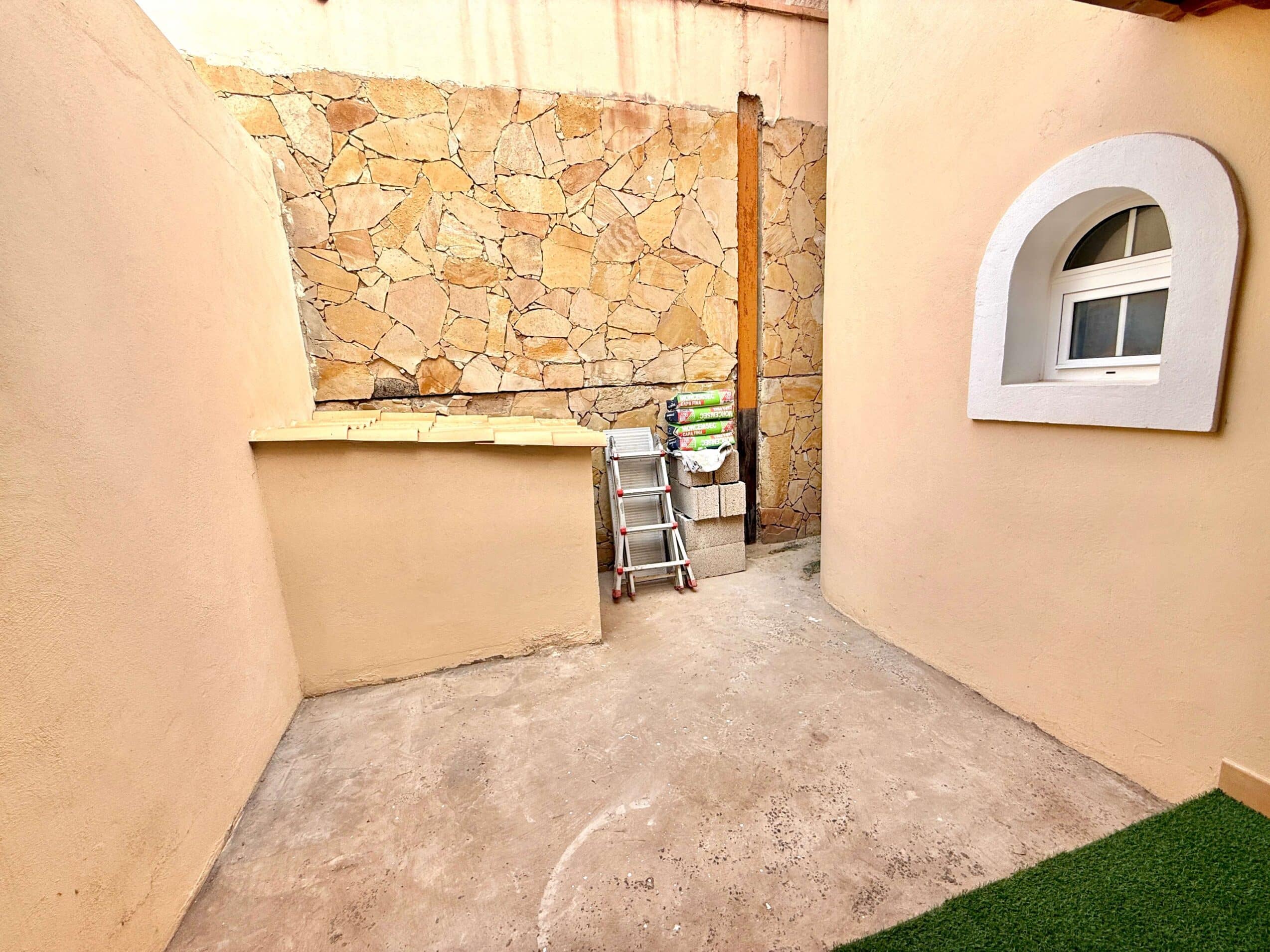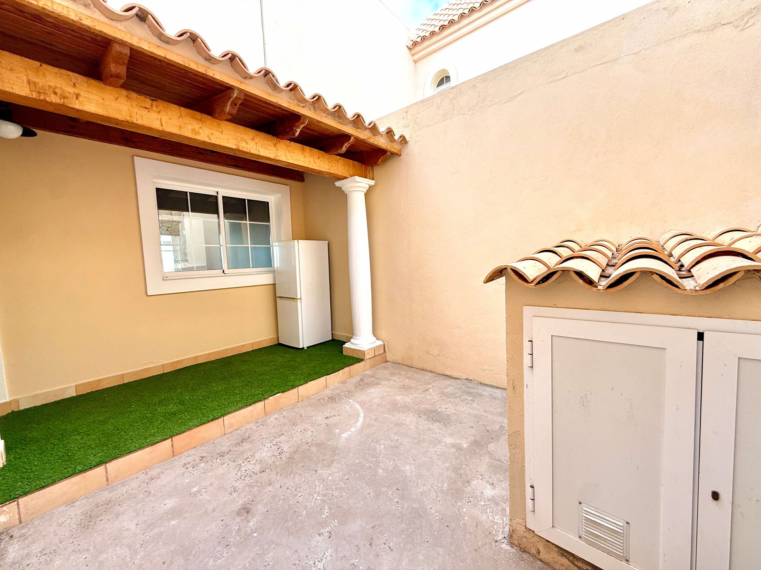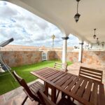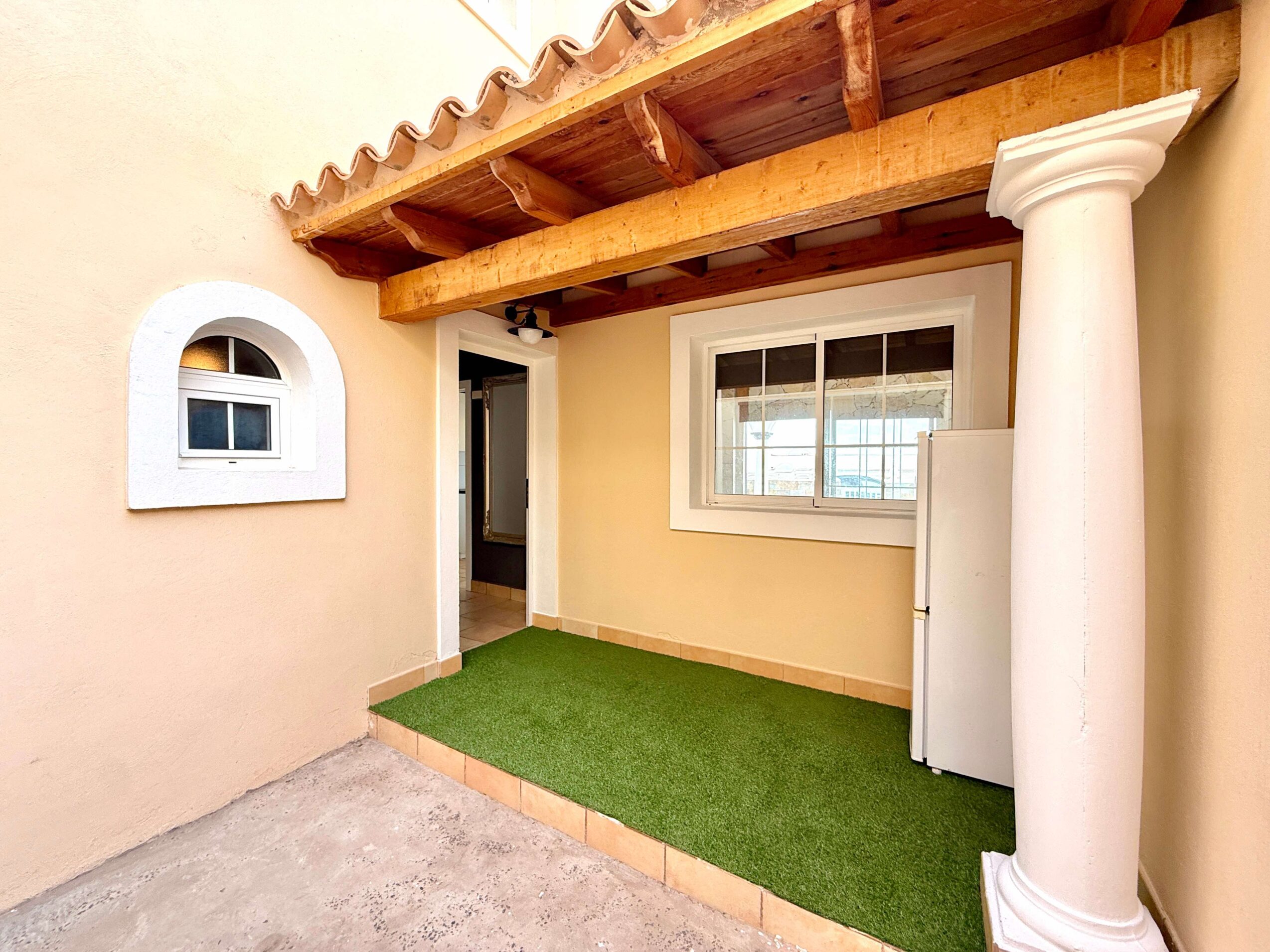 La planta baja de la propiedad consta de una amplia sala de estar que da a una terraza orientada al sur, muy bien cuidada con césped artificial ideal para pasar tiempo con familiares y amigos, cocina abierta equipada, aseo, un trastero y un patio.