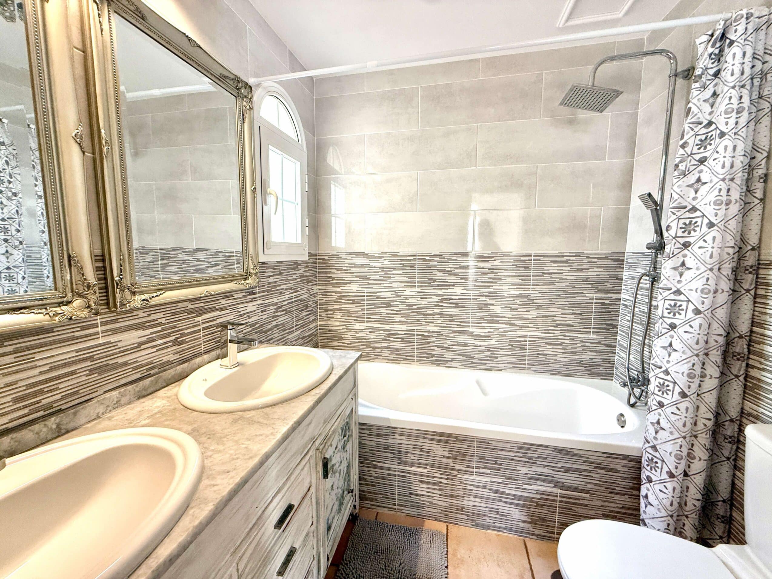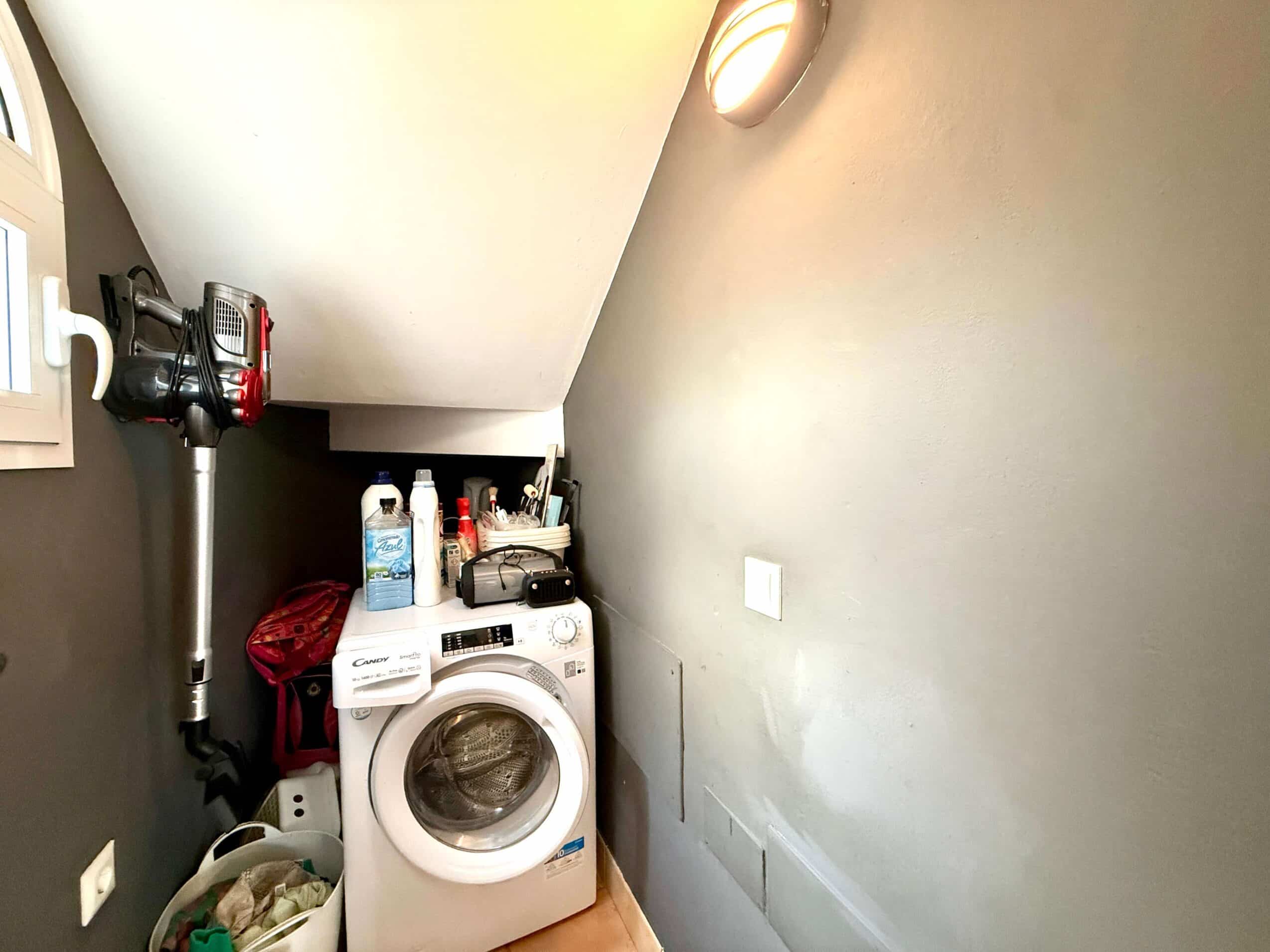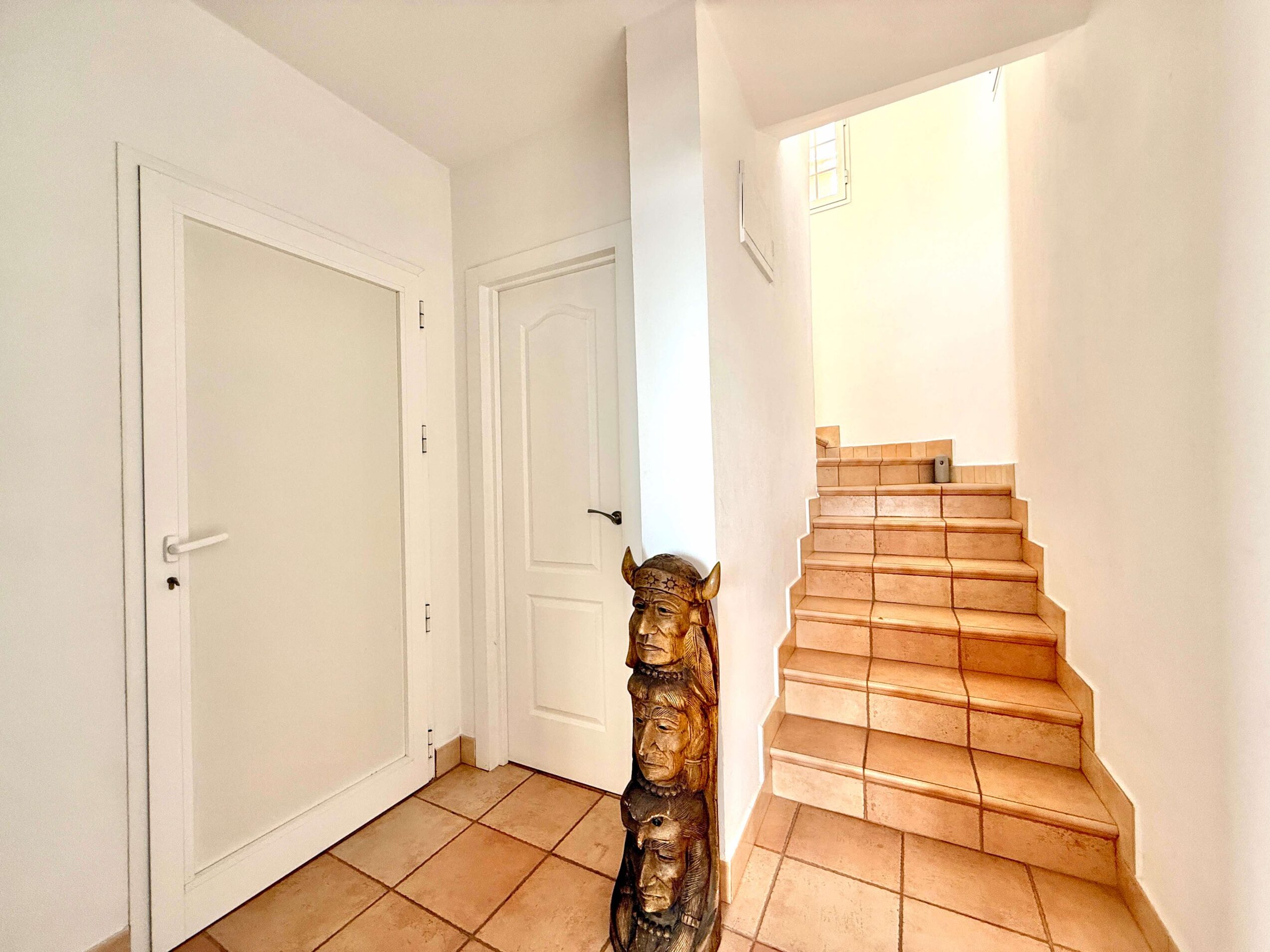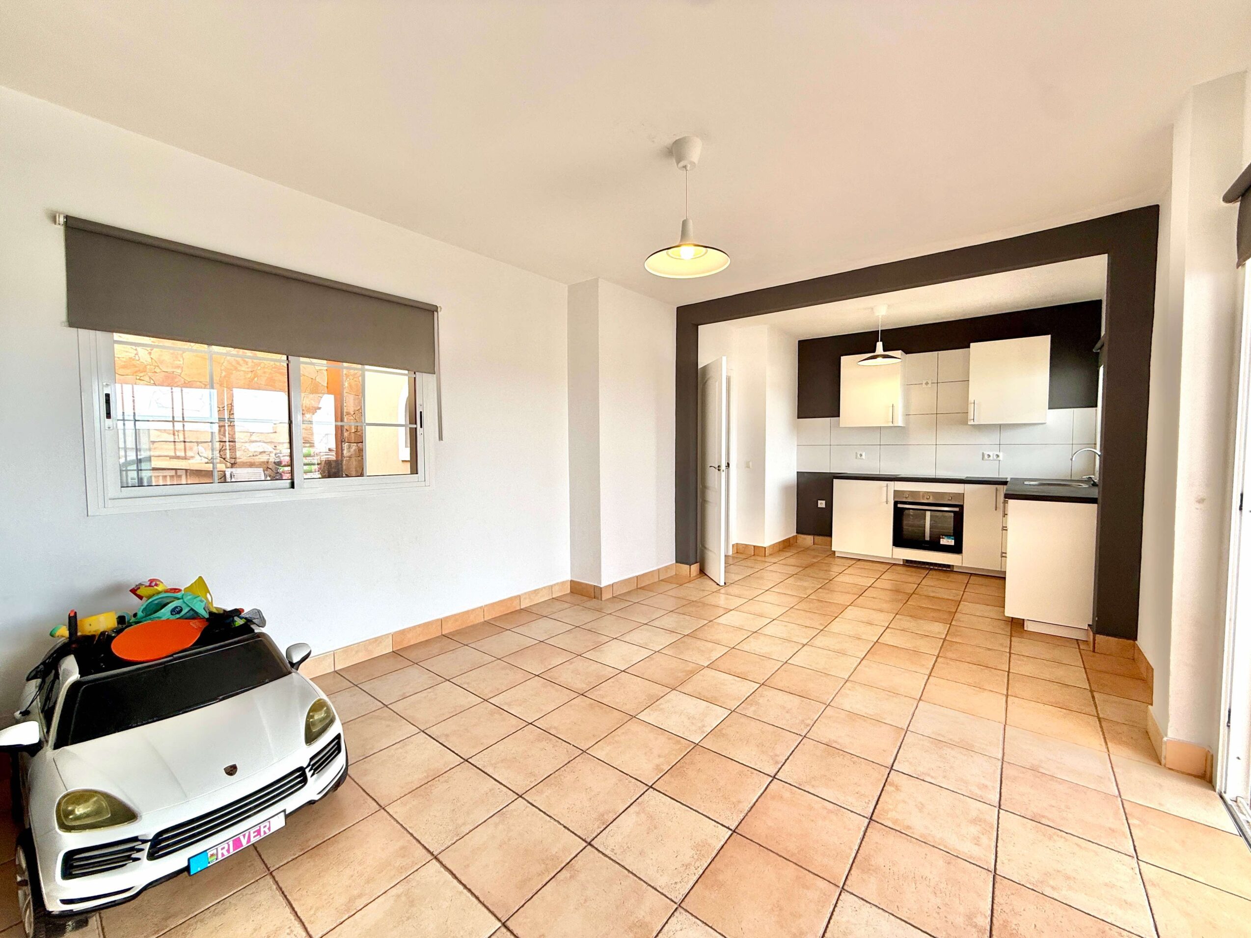 La planta baja de la propiedad consta de una amplia sala de estar que da a una terraza orientada al sur, muy bien cuidada con césped artificial ideal para pasar tiempo con familiares y amigos, cocina abierta equipada, aseo, un trastero y un patio.