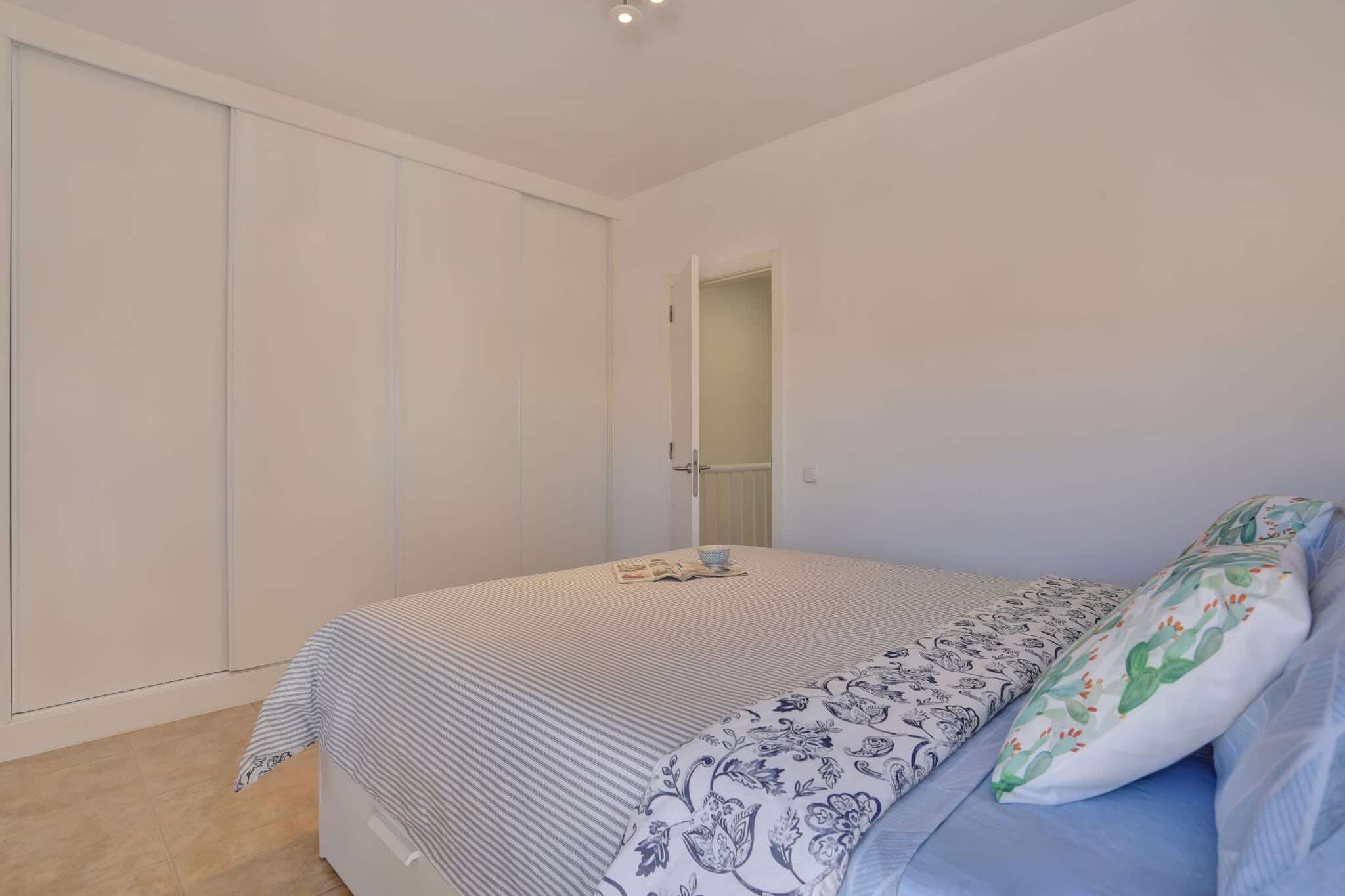 La vivienda dispone de tres amplias habitaciones, todas con armarios empotrados. La habitación principal cuenta con una gran terraza privada con vistas al mar, mientras que la segunda habitación también dispone de su propia terraza, aportando un valor añadido de privacidad y comodidad. El baño de la planta alta ha sido reformado íntegramente, incorporando un moderno plato de ducha.