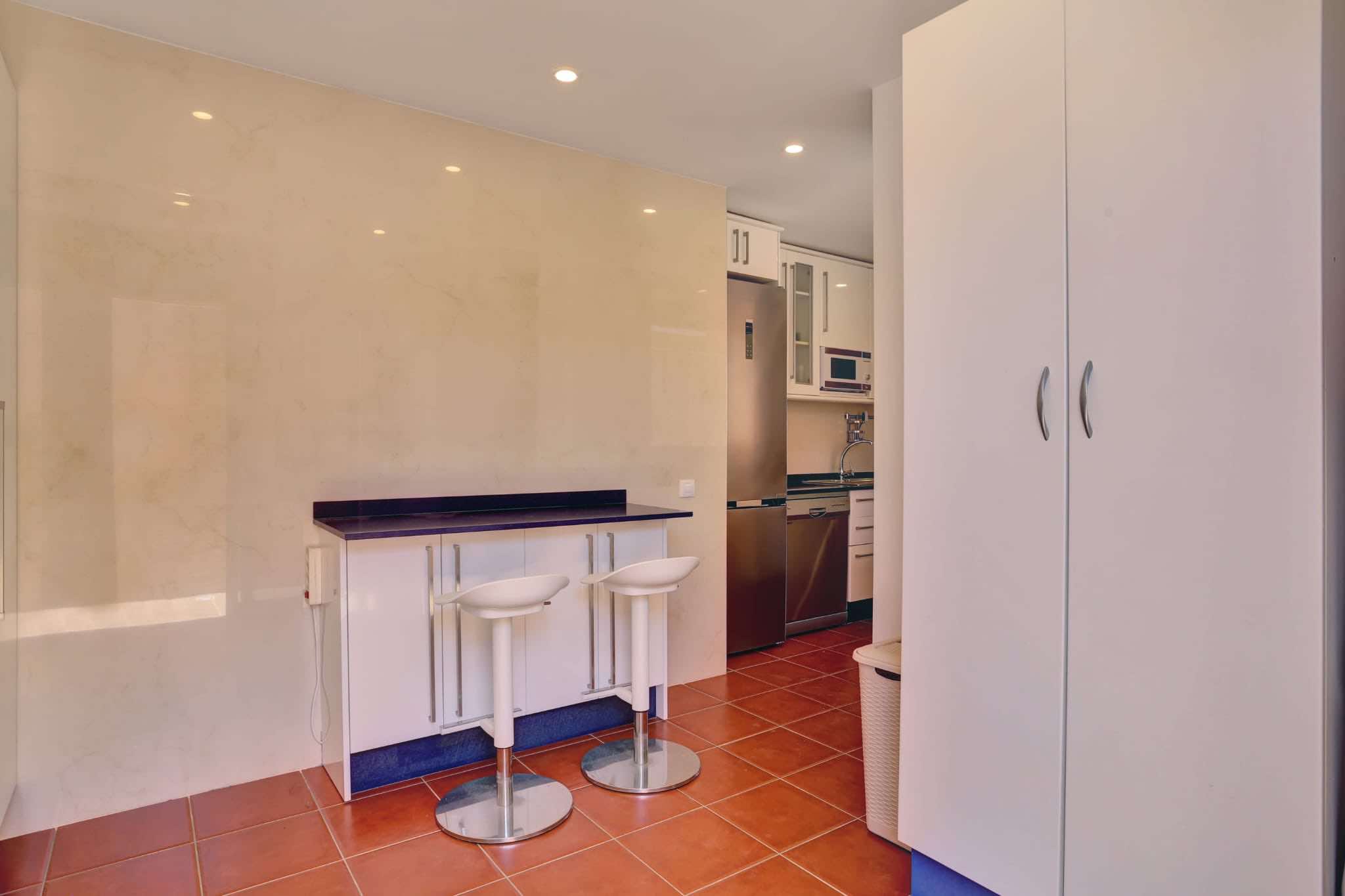 La cocina es espaciosa y se encuentra completamente equipada, complementada con una práctica zona de lavandería que dispone de ventanal y acceso al exterior.